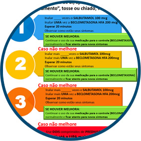 O plano de ação é o documento feito pelo médico com você para orientá-lo a monitorar os sintomas, reconhecer precocemente sinais de exacerbação/crise, e como utilizar as medicações de controle e alívio em casa e quando procurar os serviços de saúde.